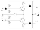 Резисторные двухтактные каскады представляют собой как бы два одинаковых однотактных каскада, которые называются плечами и работают в противофазе. Плечи двухтактного усилителя объединены общим проводом и источником питания. В отличие от однотактных усилителей двухтактные усилители имеют симметричный вход, т.е. на вход двухтактного усилителя подается симметричный усиливаемый сигнал (двухфазное напряжение, сдвинутое по фазе на 180o и имеющее равные амплитуды). Следовательно, между однотактным предварительным усилителем и двухтактным выходным каскадом должно быть предусмотрено устройство, преобразующее несимметричное однофазное напряжение в симметричное. Схемы такого назначения называют фазоинверсными.