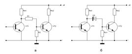 Постоянное напряжение на коллекторе V1 значительно превышает необходимое напряжение смещения на базе V2. Поэтому в усилителях с непосредственной связью требуется погасить, т.е. скомпенсировать избыточное постоянное напряжение. Цепи, предназначенные для погашения избыточного постоянного напряжения, называют схемами сдвига уровня постоянного напряжения.