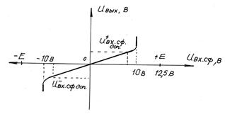 Наклон передаточной характеристики синфазного сигнала определяется Ксф. При некоторых значениях Uвх.с порядка 10 В выходное напряжение резко возрастает. Поэтому обычно задают допустимое синфазное напряжение на входе, которое выбирают:
