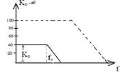 АЧХ активного фильтра низкой частоты приведена на рис.21.5. АЧХ разомкнутого ОУ приведена штриховой линией.