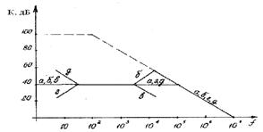 Вариант г - усилитель с завалом АЧХ на нижних частотах. При уменьшение частоты увеличивается комплексное сопротивление Z1=R1+1/ jωC1, вследствие чего уменьшается K(w) = -R2/Z1. ¯wZ1¯K(w).