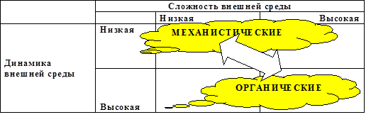 Органистические структуры усиливают обмен информацией и комбинирование идей, и предполагается периодическое формирование временных комиссий и межфункциональных команд, которые могут принимать эффективные решения в ситуации неопределенности (табл.2.3.).