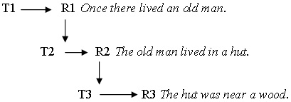 e.g. Once upon a time there lived an old man. He had a wife and a daughter. He lived in a small house.