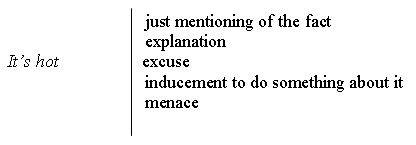 The hearer must not only recover its explicit propositional content, but also decide whether it is a statement, a question or an order. Furthermore, utterances have not only explicit content but also implicit import: