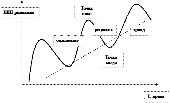 Таким образом, экономический цикл состоит из двух фаз: подъема и спада деловой активности и двух поворотных точек: пика и низшей точки спада.