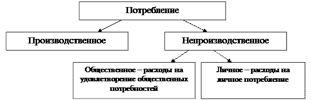 Потребление – индивидуальное и совместное использование потребительских благ, направленное на удовлетворение материальных и духовных потребностей людей. В стоимостной форме потребление – это сумма денег, которая расходуется населением на приобретение товаров и услуг.