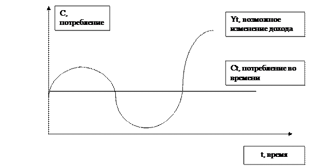 В рыночной экономике величина дохода подвержена колебаниям во времени (то доход больше, то меньше), а величина потребления более или менее постоянна (рис.).
