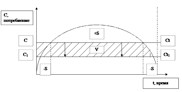 Поэтому, чтобы уравновесить эти периоды экономический агент должен откладывать часть дохода на будущее (сберегать).