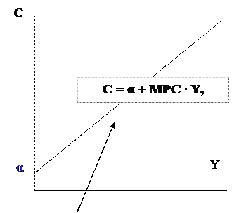где: α – независящее от размера дохода потребление. Его размер часто ассоциируют с прожиточным минимумом.