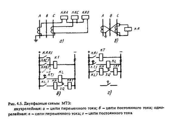 В случае, когда МТЗ должна действовать только при междуфазных КЗ, применяются двухфазные схемы с двумя или одним токовым реле.