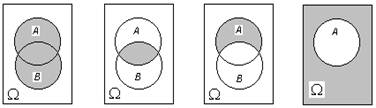 На рис. 2.1 события A + B, A · B, A \ B, `A заштрихованы.