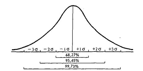 При идеальном случайном отборе в пределах одного среднего квадратического отклонения варьируют результаты 68,27% всех возможных выборок, в пределах двух средних квадратических отклонений — 95,45%, а в пределах трех «сигм» — 99,73%.