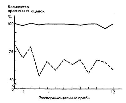 В середине 1950-х гг. Соломон Аш изучал условия, при которых индивид принимает либо отвергает групповое давление, когда оно противоречит фактам11. Группа из шести-девяти человек (мужчины, студенты колледжа, 17 — 25 лет) получала задание на проверку визуального распознавания длины нарисованных на карточках отрезков. Такова была «легенда» эксперимента. Предъявлялась карточка с изображением отрезка прямой линии — стандарт, который надо было сравнить с тремя другими отрезками разной длины. Один из них был равен стандарту, два другие — отличались. Производилось 18 проб, в которых испытуемые открыто высказывали оценки длины отрезков. Говорили по очереди. Один из них — объект реального экспериментирования — всегда отвечал последним или предпоследним и испытывал давление групповой оценки — изначально ложной. Таким образом, создавалась ситуация конфликта между группой и индивидом. В итоге было установлено, что групповая заведомо ложная позиция снижает число правильных ответов до 50 — 70% (рис. 6.1).