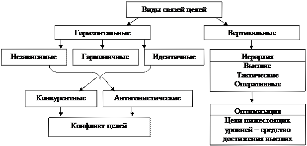 При формировании дерева целей и установление целевых приоритетов возникает также проблема учета и согласования связей между целями организации. Проблема эта может быть решена по схеме, представленной на рис.11.