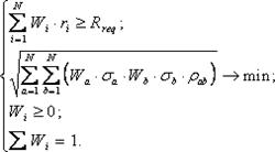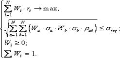 С использованием модели Марковица для расчета характеристик портфеля прямая задача приобретает вид: