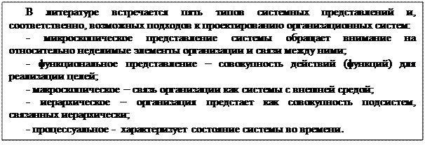 Таким образом, системное отражение оригинала (организации) может быть представлено в графической модели. Такого рода модели будут постоянно использоваться при рассмотрении организации.
