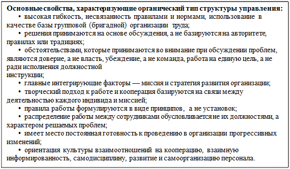 Для органического типа организаций характерны проектные и матричные структуры, сетевые.