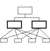 | Матричная | Двойная линия подчинения сотрудников - линейному руководителю и руководителю программы, проекта (60-70 гг. ХХ в.) | - достижение большой гибкости и скоординированности работ; - возможность в большей мере использовать профессиональные знания сотрудников; - усиление взаимосвязи между специалистами функциональных подразделений и руководителями программ; - возможность сконцентрировать внимание на выполнении конкретной программы | -чрезмерные накладные расходы т.к. структура сложна и дорога в эксплуатации; - сложность применения на практике т.к. требуется соответствующая подготовка работников и особая организационная культура; - снижение управляемости из-за двойного подчинения: отсутствует полноценный контроль по уровням управления; - возможность конфликтов между проект-менеджерами и руководителями функциональных отделов | ![]() ![]() |