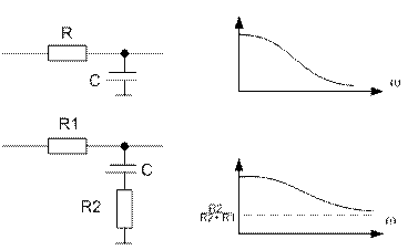 К(р)=1/рT+1, К(р)= рT1+1/рT2+1, T1=R2C, T2=(R1+R2)C (6.26)