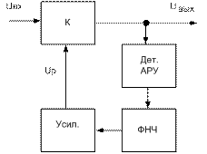 т.е. постоянство амплитуды выходного напряжения тем больше, чем выше крутизна регулировочной характеристики и выше коэффициент передачи цепи АРУ