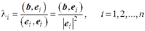 Пусть требуется найти разложение произвольного вектора b по ортогональному базису е 1,…, е n. Составим разложение этого вектора с неизвестными пока коэффициентами разложения по данному базису: