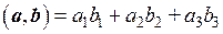скалярное произведение векторов a = (a 1, a 2, a 3) и b = (b 1, b 2, b 3) определим по формуле (1.19):