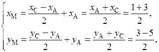 . Найдем координаты точки М. Так как точка М– середина стороны АС, то 2