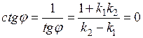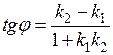 Формула (2.10) дает выражение тангенса угла между двумя прямыми через угловые коэффициенты этих прямых.