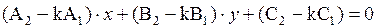 2 является существование такого числа k, что А2 = kА1, В2 = kВ1, С2 = kС1, т.е. условие пропорциональности коэффициентов уравнений.