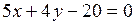 5×3 + 4×1 – 20 = –1 и 5×6 + 4×(–1) – 20 = 6.