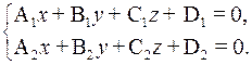 Прямая в пространстве может быть задана как линия пересечения двух плоскостей, т.е. как множество точек, координаты которых удовлетворяют системе