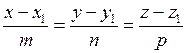 Если прямая параллельна ненулевому вектору a = (m,n,p) (называемому направляющим вектором прямой) и проходит через точку М1(х 1, у 1, z 1), то ее уравнения могут быть получены из условия