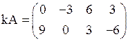2. Умножение матрицы на действительное число. Произведением матрицы А на действительное число k называется матрица, каждый элемент которой получен умножением соответствующего элемента матрицы А на число k.