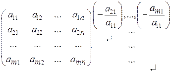 к элементам каждой строки, начиная со второй, прибавим соответствующие элементы первой строки, предварительно умноженные на