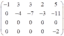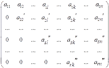 Выполним уже описанные операции с матрицей, взятой в рамку, и продолжим действовать аналогичным образом, вычеркивая нулевые строки, если таковые получатся в результате преобразований. После конечного числа шагов получим матрицу, эквивалентную исходной матрице: