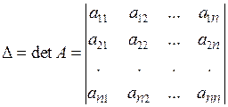 Определение. Определителем матрицы А порядка n (или определителем n-го порядка) называется алгебраическая сумма n! слагаемых, каждое из которых представляет собой произведение n элементов