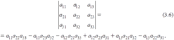 Знаки, с которыми члены определителя входят в формулу (3.6), легко запомнить, пользуясь схемой (рис.3.1), которая называется правилом треугольников или правилом Саррюса.