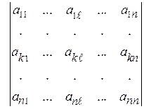 Формула (3.7) называется разложением определителя по элементам k-ой строки. Разложение определителя по элементам какого-либо столбца записывается аналогично.