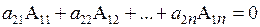 Теорема 3.5. Сумма произведений элементов какой-либо строки (столбца) определителя на алгебраические дополнения соответственных элементов другой строки (столбца) равна нулю.