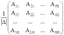 Вычисляем обратную матрицу А–1 по формуле (4.2) и находим транспонированную матрицу (А–1)Т: