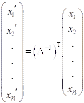 где АТ и (А–1)Т– матрицы, транспонированные по отношению к матрице А и обратной матрице АТ, соответственно.