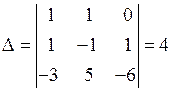 , вычислим определитель, составленный из координат этих векторов: