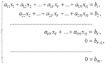 уравнений системы (5.13) являются тождествами 0=0 и их можно вычеркнуть из системы. В этом случае ранги основной и расширенной матриц системы (5.13) равны r и по теореме Кронекера-Капелли система совместна, причем