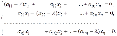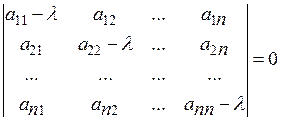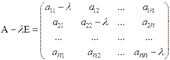 – элементы матрицы А, xj – координаты собственного вектора х. Поскольку собственный вектор не является нулевым, то однородная система (6.11) должна иметь ненулевое решение, т.е. в силу следствия 2 теоремы 5.5 определитель этой системы должен быть равен нулю: