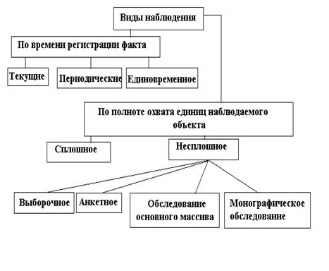 По времени регистрации фактов наблюдение бывает текущее и прерывное (периодическое либо единовременное).