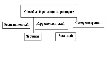 Опрос может быть организован по – разному: экспедиционный (устный опрос); саморегистрация; корреспондентский; анкетный; явочный.