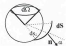 1. Рассмотрим точечный заряд Q. Опишем вокруг его воображаемую сферу и вычислим полный поток через эту поверхность. Для вычисления используем определение телесного угла dW (см. рис.4):