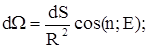 Рис.4.Телесный угол. | ![]() ; Ф = = 4p E R2, т.к. в подинтегральном выражении величины E и R, а полный телесный угол равен 4p. Подставляя вместо Е определение напря-женности поля для точечного заряда Q, находим, что |
