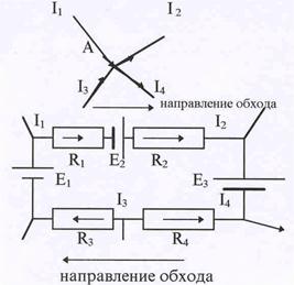 Для расчета сложных электрических цепей немецким ученым Кирхгофом были сформулированы эмпирические правила. Первое из них утверждает, чтодля любого узла электрической цепи сумма токов, входящих и выходящих из него, равна нулю.При этом то-