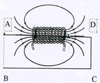 Применим теорему о циркуляции для вычисления поля на оси длинного соленоида. На рис.23 показаны силовые линии магнитного поля для катушки. Мысленно удлиняя ее, можно догадаться, что для достаточно протяженной катушки поле внутри соленоида и снаружи его будет направлено горизонально (относительно рис.) Выберем контур в виде прямоугольникаАВСD так, чтобы сторона AD лежала на оси соленоида. Тогда циркуляцию